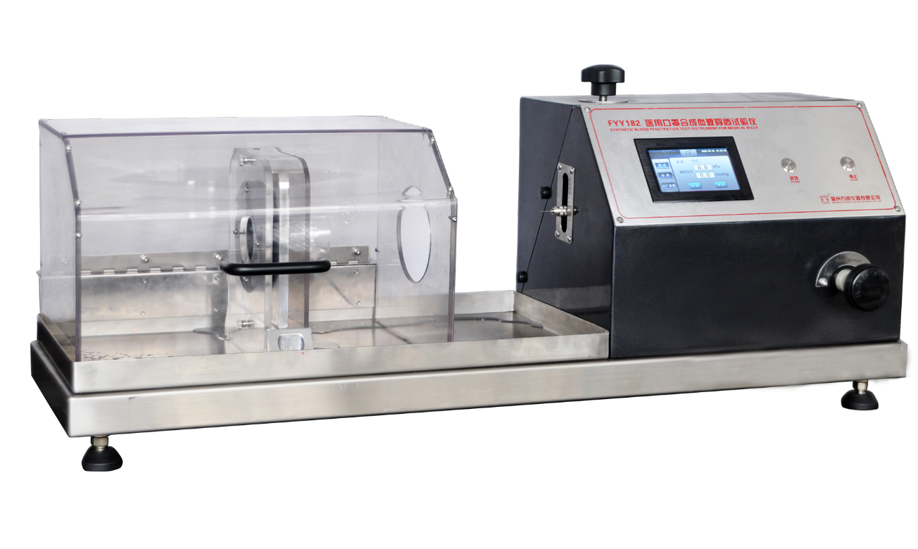 FYY182口罩合成血液穿透試驗儀將醫用口罩支撐在試驗裝置上,以一定體積的合成血液水平噴射到口罩上,模擬口罩被穿透后血液噴濺的場景。使之與醫學活動過程保持一致。從而觀察口罩的穿透情況來評價口罩抗合成血液穿透性。