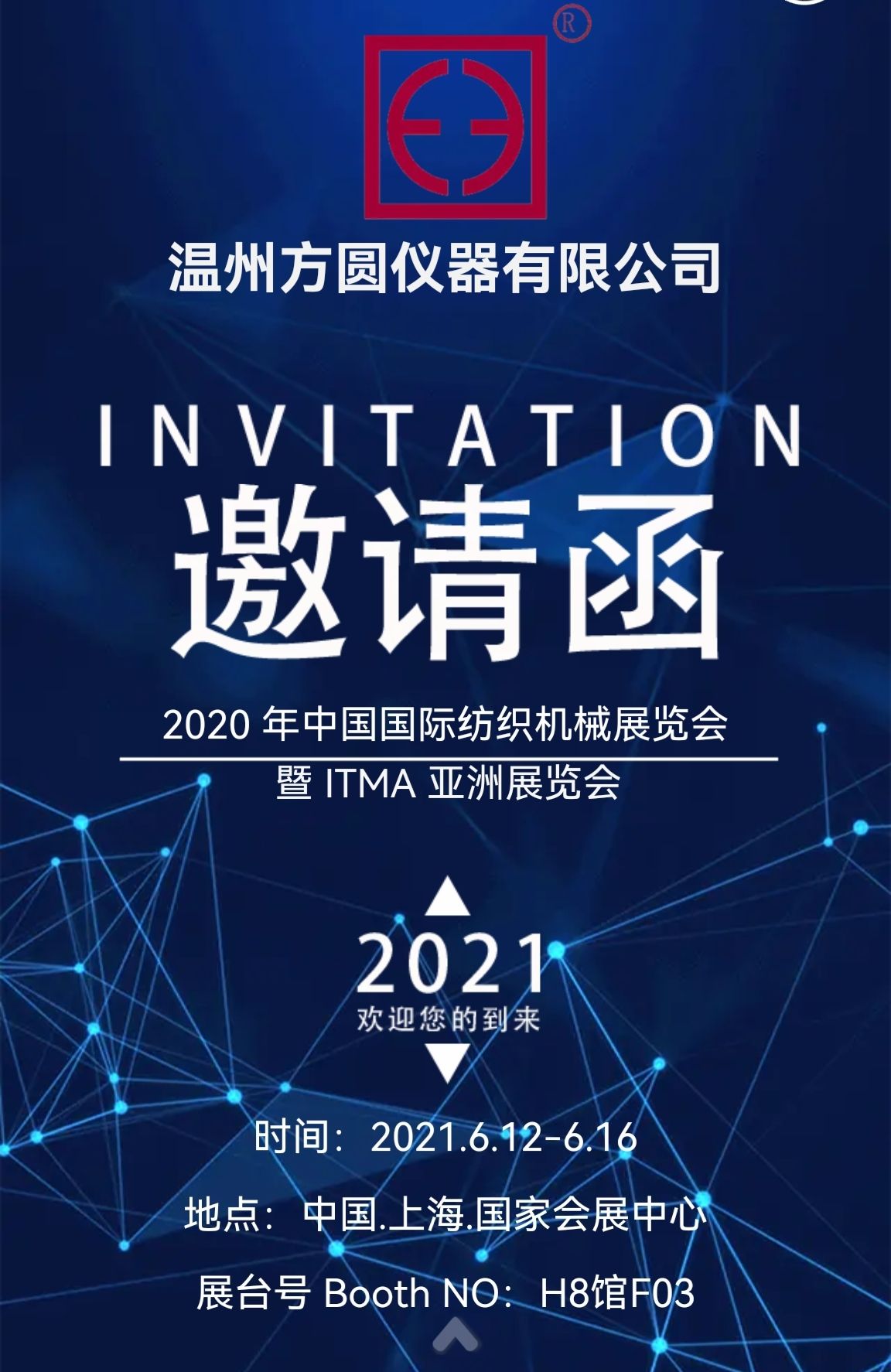 感謝您一如既往對(duì)溫州方圓儀器有限公司的支持,我司將參加上海舉辦的中國(guó)國(guó)際紡織機(jī)械展覽會(huì)暨ITMA亞洲展覽會(huì),公司展位號(hào):H8館F03。